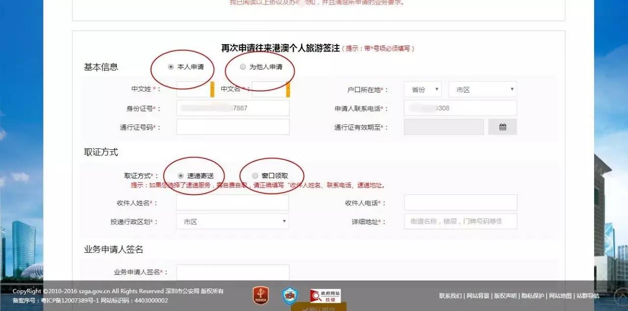 阅读“协议书”,并填写“申请人信息”、现持“证件信息”、“业务申请”及“证件偕行人员信息”后,点击“确认提交”。