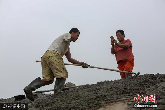 近日,在石家庄市栾城区南赵台村一栋初具雏形的两层小楼的楼顶上,津津正在用钉耙平整水泥,同在工地干活的母亲,腾出手为儿子拍摄短视频。今年24岁的小伙陶津津,8年前,因一次意外失去了右臂。通过家人的开导和陪伴,他渐渐从伤痛中走出来,开始在工地打工。一次偶然的机会,他开始通过网络分享自己的工作和生活,现已拥有79.4万粉丝。图片来源:视觉中国