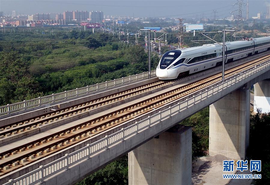 一列动车组列车行驶在徐兰高铁洛阳段(8月16日摄)。新华社记者李安摄