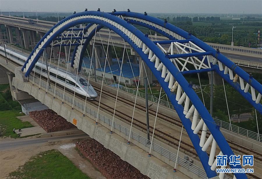 一列动车组列车驶过京广高铁黄河大桥(8月17日摄)。新华社记者李安摄