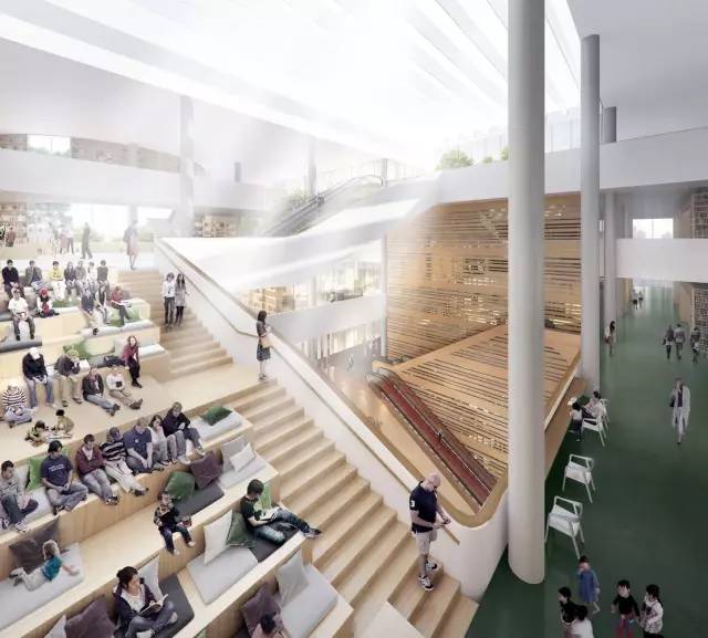 室内中庭空间概念很好,分体化的城市客厅,有下沉的公共空间,是方案的特征,不仅是内向,而且是在不同楼层产生对外的开口,为使用者提供外向视点与城市产生视觉互动,和城市对话,边庭的做法有一定的特色,屋顶利用充分。