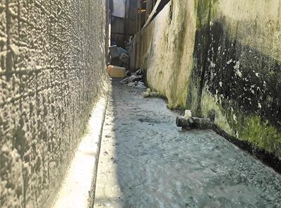 酸性除油池排水口堆积了厚厚一层污泥,发出刺鼻的气味。