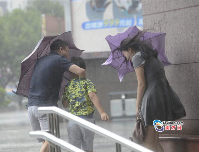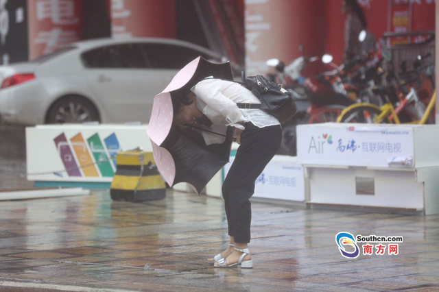 “天鸽”已给广东带来明显风雨影响。图为广州市民冒雨前行。