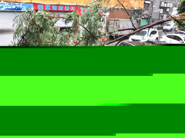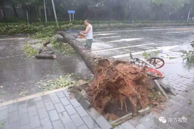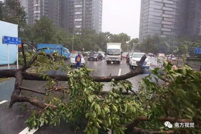 “天鸽”已给广东带来明显风雨影响。图为深圳有大树被吹倒,交通受到一定程度影响。