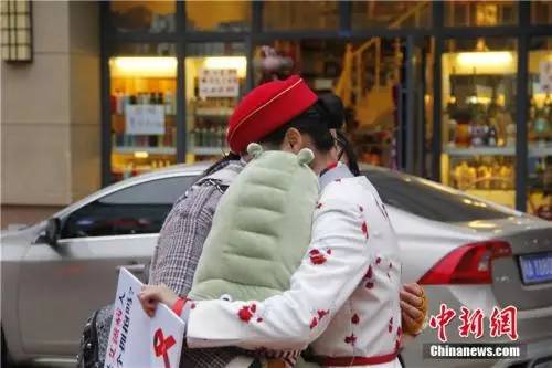 图为大学生扮“艾滋病患者”求拥抱,宣传防艾知识。毛成山摄