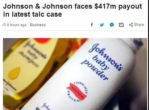 这是强生因滑石粉卫生用品致癌风险在美国面临的4800起法律诉讼中的最新一起,也是迄今为止被判赔偿金额最高的一起,超过了此前数起已判决官司的赔款总额。