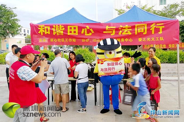 深圳新闻网坪山讯(记者 郑则彬 通讯员 廖威龙 蔡依云 胡飞飞)为加快推进和谐社区建设,努力营造良好法治环境与文明生态环境,8月26日下午,石井街道田心社区贯彻执行坪山区全面推进依法治区工作,联合坪山公安分局石井派出所、社区党群服务中心、爱之光义工队在辖区主要人员流动区扎实开展“和谐田心,与法同行”社区普法宣传主题体验活动,旨在通过“知法懂法用法,争当社区法律达人,建设法治先进社区”,向社区居民宣传与居民切身利益有关的法律法规知识,增强居民学法守法的意识,提高居民法律素质。