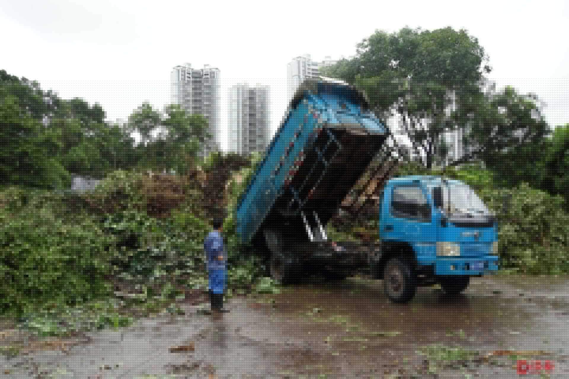 “一天能处理200吨,树枝粉碎场开足马力,不下雨时开机粉碎。”黄旭光介绍,从8月23日至27日,粉碎场共已接收树枝903车,目前,处理清运碎料837吨,堆场还堆积了400车约900吨,这些断枝经过粉碎处理将变成燃料卖给发电厂,因此,下雨天处理不了,被雨水打湿的树枝树叶粉碎后一是很容易发酵产生气味,二是湿的,不能用做燃料。