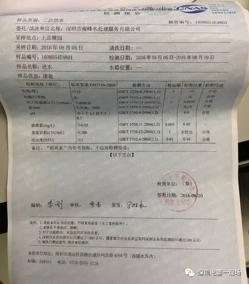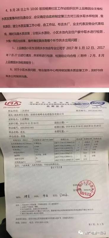 目前小区所属的杨美社区工作站也介入调查,相关负责人表示,该小区属于三次供水,三次流转后水质很难得到有效保障,他们建议布吉供水有限公司随时监测该小区地下蓄水池水质情况,保证水质合格后方可供水;街道办牵头,坂田卫生监督分所、布吉供水有限公司分别在总装表前及总装表后不同地段、时间对水质进行抽样监测,找出水质变差的原因;由布吉供水有限公司解决该小区供水水压不足问题,同时,监督物业公司定期做好二、三次加压和小区内蓄水池清洗消毒工作。