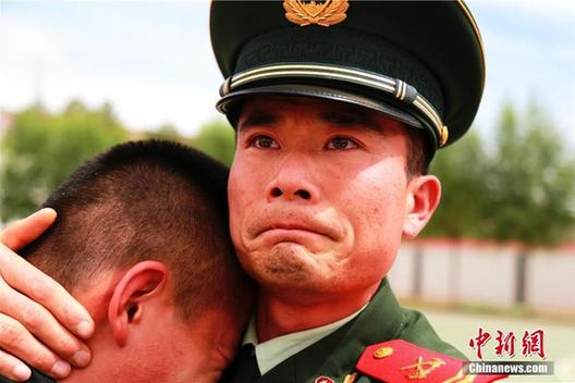 老兵们要离开朝夕相处的战友,哭红了双眼。裴海博摄