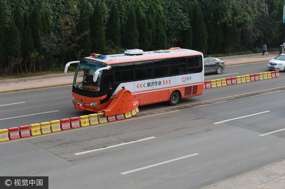 山东首现“拉链车” 自动设置潮汐车道