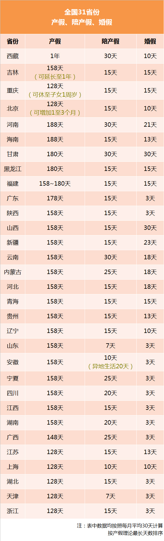自2015年12月27日全国人大常委会审议通过修订后《人口与计划生育法》以来,各地相继修订地方计生条例。截至2017年7月,全国各地的新计生条例全部出炉,新规对产假和男性陪产假作出调整,同时均取消了晚婚假。