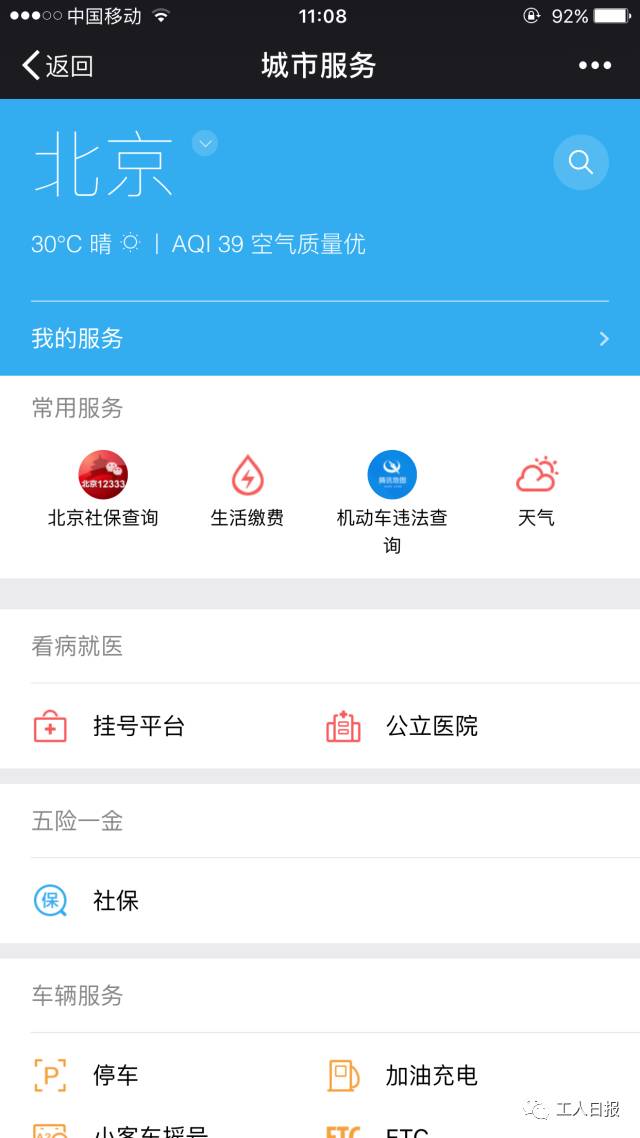 在微信的“钱包”功能中,点击进入后,在“腾讯服务”栏目中选择“城市服务”,点击进入后,微信会根据用户所在地,并根据相关功能数据接入,提供相应的服务。在北京,参保人员可在该栏目下找到“社保”功能,进入后用户可查询个人社保信息。