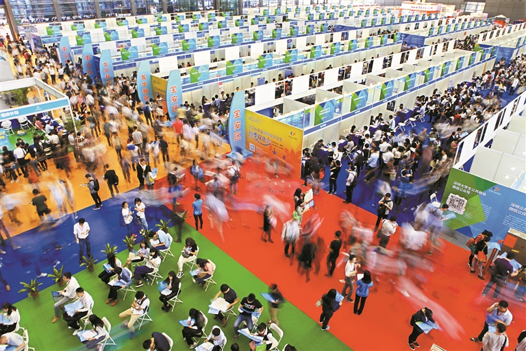▲2016年4月17日,海归专场招聘会、全国高校毕业生双选会及“互联网+”专场招聘会火爆现场。深圳报业集团资料图片