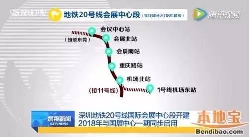 深圳地铁20号线暂设6个站点,是2018年会展中心开展的配套市政项目。线路起于宝安国际机场T4航站楼,与地铁11号线、穗莞深城际线换乘,之后向北至深圳国际会展中心,预留南延接口。届时将于东莞的地铁R2线无缝接驳。