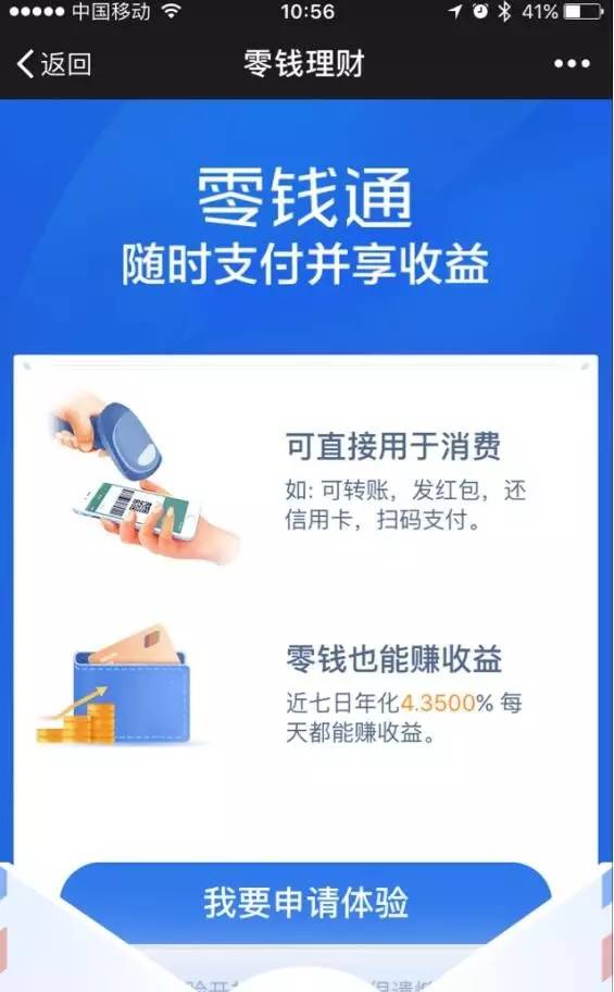 据了解,腾讯正在进行白名单测试,并向一部分客户推荐了零钱通,可以随时支付并享受收益。