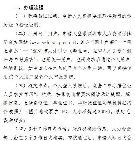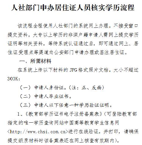 如果对操作流程还有疑问,可以登录深圳市人力资源和社会保障局门户网站(http://www.szhrss.gov.cn/),在“办事服务”--“个人业务”--“个人办事”栏中查看最新“申办居住证人员核实学历”事项的官方操作指南。