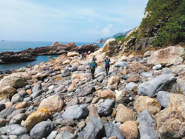 海岸线上礁石多,注意不要跳跃以免坠落。深圳商报记者 张妍摄