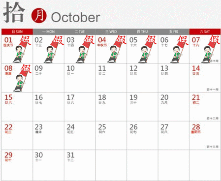 根据国务院办公厅通知精神,2017年中秋节、国庆节放假安排如下:10月1日(星期日)至10月8日(星期日)放假调休, 共8天。9月30日(星期六)上班。