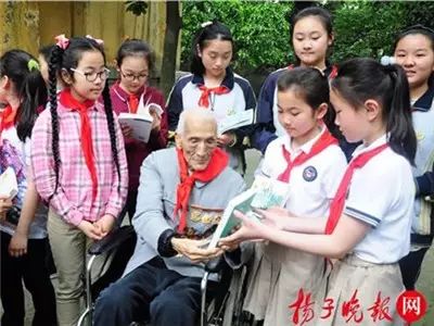 在赠书现场,南京月苑第一小学的赵静、林森老师看到老将军精神矍铄,赶紧拿出手机拍摄照片。“我们要把老将军的风采告诉家人和同事们,老将军对于孩子们的关心,也激励我们更好地从事教学工作。”张玉华老将军当时腿脚不便,走路已经需要家人搀扶,但他看到孩子们时,显得非常高兴,他激情昂扬地唱《学习雷锋好榜样》等革命歌曲给孩子们听,还勉励孩子们刻苦学习。张将军长期关心青少年儿童成长,每年六一儿童节前夕,他都要购买书籍赠送给少年儿童。