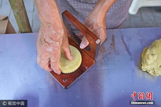 每天早上5点多,两人开面、调馅,6点多出摊,一直到下午6点多收摊。“每天打500个月饼,站上一整天,腿都肿了。”马新韩说,打月饼是个苦差事,尤其是这些传统工艺,很多年轻人不感兴趣,会的人越来越少,坚持来西安卖,就是想让城市人,吃上原生态。图片来源:视觉中国