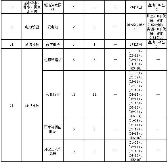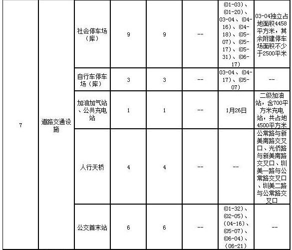 注: 直接填写地块或单元编号表示该设施必须独立占地建设,以地块或单元编号加( )表示该设施为非独立占地建设。