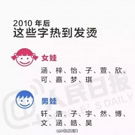 据了解,2010年以后出生的男孩中,带“伟”字的595人,带“鹏”的1137人,带“峰”的646人,带“磊”的365人;2010年以后出生的女孩中,带“娜”的291人,带“慧”的1114人,带“莹”的1119人。