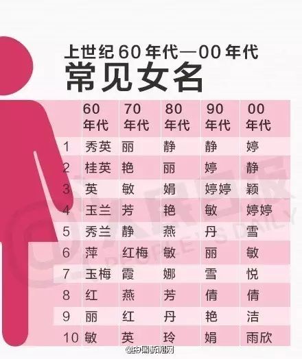 四、上世纪60年代至本世纪00年代,这些名字最受欢迎↓↓