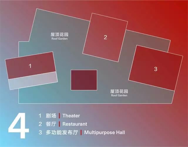 三层楼构成的平台形态极富雕塑感,与地块形状高度契合;在基座上方延伸而出的三个铝面楼阁勾勒出轻盈的轮廓,仿若置身于园林中的楼阁。