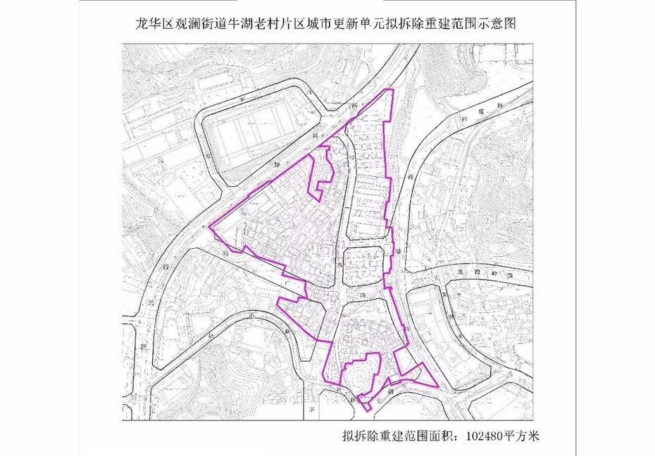 △龙华区观澜街道牛湖老村片区城市更新单元拟拆除重建范围示意图