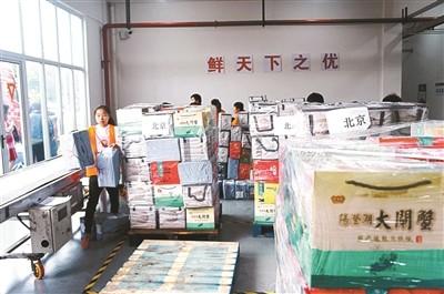 开湖当天,大批凌晨捕捞的阳澄湖大闸蟹已准备空运全国