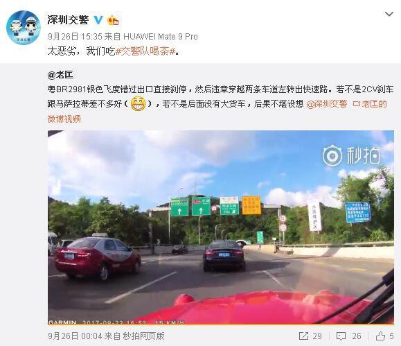 随后,@深圳交警对此事作出回应:太恶劣,我们吃到交警队喝茶。