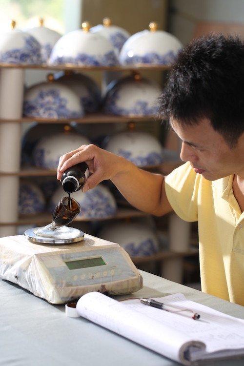 待分配给描金师的金水每次要倒入小盅称重