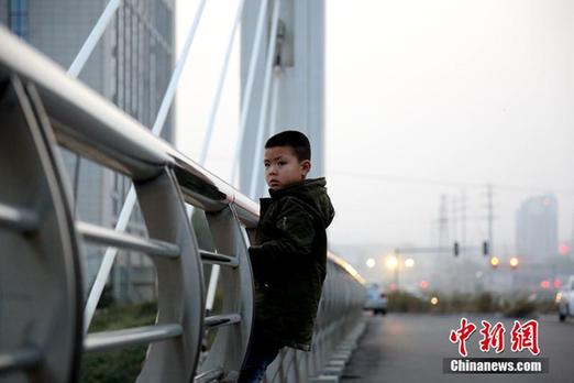 高平市公安局交警大队民警王旭峰的儿子。他正在父亲巡逻线路中等候。王旭峰希望巡逻途经时能看看儿子,于是孩子从傍晚一直等到路灯亮起。王冠楠 摄