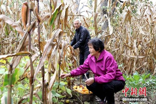 高平市公安局石末派出所教导员王建军的父母。乡下的秋收时节,两位老人在田间掰玉米。王建军的父母说能够理解儿子。 王冠楠摄