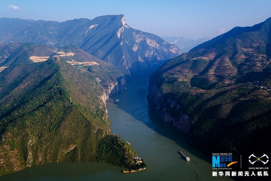 图为今年11月初航拍的瞿塘峡,江水碧绿宽阔。