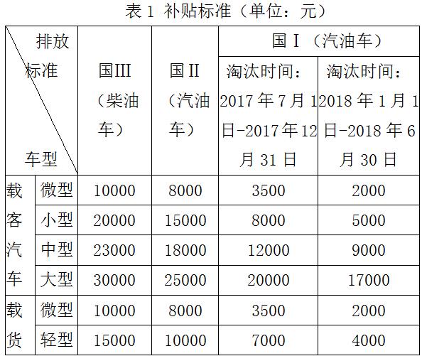 为在年内加快国Ⅰ汽油车的淘汰进度,国Ⅰ汽油车在2017年7月1日(含)至2017年12月31日(含)和2018年1月1日(含)至2018年6月30日(含)提前淘汰的,按对应标准给予补贴。