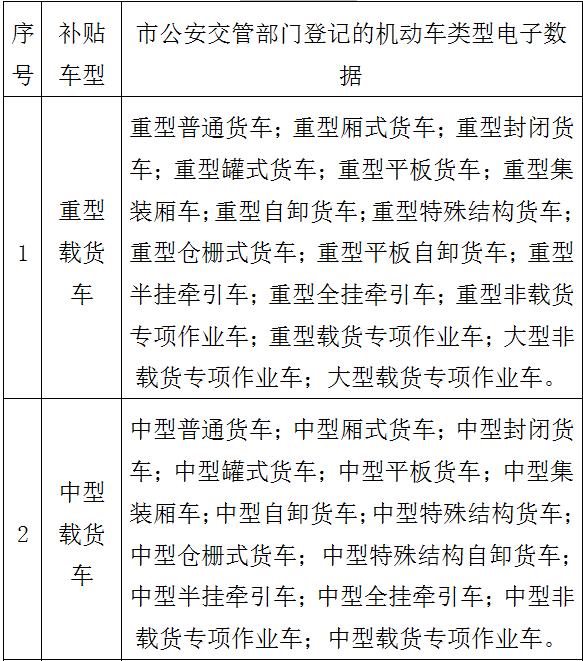 老旧车提前淘汰奖励补贴车型与机动车注册登记类型对应表