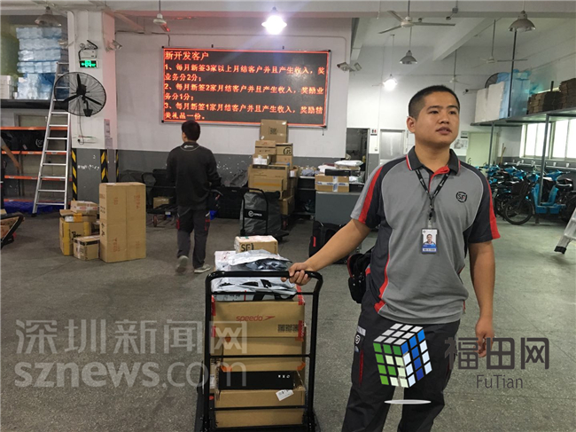深圳新闻网11月13日讯(记者 邓涛 实习生 李小辉 林曼琪)相关数据显示,今年双十一期间共产生包裹13.8亿个。如此庞大的业务量,堪称物流业的“春运”,考验着每家物流公司“最后一公里”的配送能力。网购订单瞬间激增,“双十一剁手”抢来的宝贝是如何快捷安全的到达顾客手中?11月13日,双十一后的第一个工作日,深圳新闻网记者跟随顺丰速运坂田营业厅快递员林渊文体验一次上门送货,通过镜头带领大家近距离感受全民购物节下快递员“疯狂”的一天…