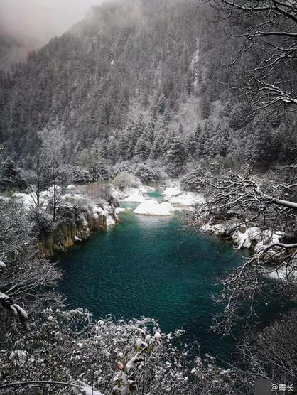 11月21日,四川九寨沟迎来入冬后的第一场降雪。纷纷扬扬的雪花漫漫飘落,九寨沟变得更加玲珑剔透。色彩斑斓的海子仿佛披上了水晶装饰,蓝色湖水上浮现出形状不一的冰花,像哈达、像流云、像青纱,妙趣天成。