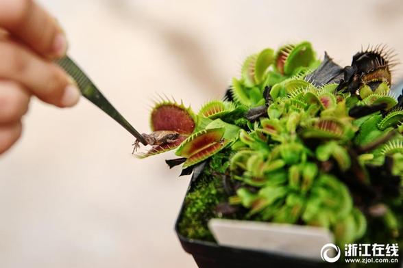 浙江嘉兴海宁有一位90后女生吕冰琰,大学毕业后不顾家人的反对从城里跑到乡下过起了养花弄草的日子。不过,她种的花草可有点冷门,因为它们专吃肉!