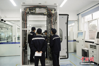 11月29日,“发现最美铁路·感受诗意宁安”,走访南京动车段实训基地,学员在司机室系统控制台进行现场实作培训。