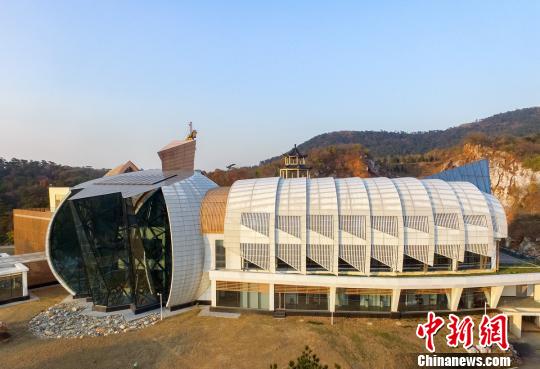 12月5日,在江苏句容茅山景区附近,一座新落成不久的红木艺术馆外型酷似脱壳金蝉。从空中俯瞰,左边的黄色建筑部分如金蝉刚刚脱下的壳,栩栩如生。