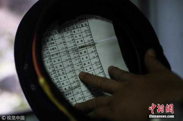 5634次列车上,一位列车员展示卡在帽子里的列车停靠时刻表。该表显示,5633/4次列车在途径凉山州德昌县、喜德、越西县境内时,几乎每隔10分钟就停靠一站。据在慢火车上工作了20年的彝族列车长阿西阿呷介绍,火车沿线山区对教育越来越重视,曾一度没有机会上学的女孩,也被越来越多的家长送到条件更好的县城甚至州府西昌读书。就这样,慢火车将一批批学生往返运送于家与学校之间,助力他们走完求学之路。不少人也因此而摆脱贫困,走出大山。