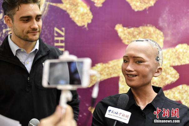 12月12日,世界首个获得公民身份的机器人索菲亚通过中国新闻网与网民互动。机器人索菲亚由香港公司Hanson Robotics设计,并在今年10月获得了沙特王国的公民身份,成为世界上第一个获得人类公民身份的女性人形机器人。