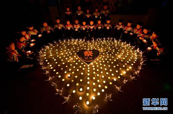 12月12日,邯郸市邯山区实验小学学生点燃蜡烛,为南京大屠杀遇难同胞默哀。