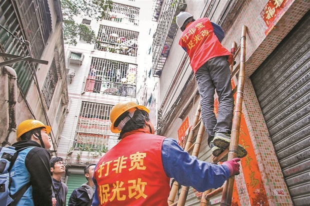 昨日,晶报记者跟随联合执法小组一行,全程参与记录执法过程。记者在现场看到,城中村内外墙上,不少墙面上各类线路盘根错节、杂乱无章,专业执法人员根据线路,清理出黑宽带线路,现场加上梯子,对非法宽带线路进行逐一进行剪切拆除。