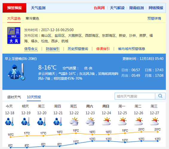 深圳市气象台预计,18日起深圳阳光增多,湿度下降,风力减弱,天气趋于干燥,气温9-16℃,北部及山地再低1-2℃;19-21日大致天晴干燥,日温差大,早晚天气寒冷,最低气温在8-10℃;22日起气温逐渐回升。