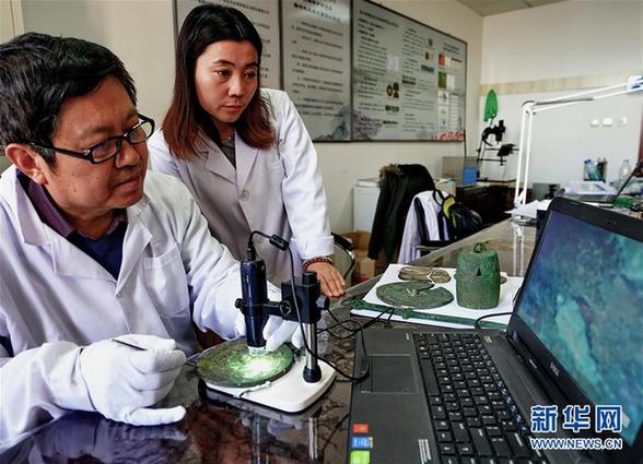 12月19日,河北省文物保护中心专家雷金明(左)和同事检查待修复文物的损坏程度。近日,河北省文物保护中心宣化站启动金属器文物科技保护修复项目。据介绍,此修复项目包括青铜器、铁器等珍贵文物200多件,涉及年代分布从春秋战国到明代。文物专家将据文物实际情况确定修补程度,修复工作主要是清洗除锈、除氯、缓蚀、矫形补全、做旧、封护、微环境控制等,预计2至3年内完成。