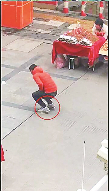 近日,许多市民的微信朋友圈流传一段“商贩拉线”视频,然后注明:“去步行街的注意了,碰瓷新损招,绊倒碰到就赔得倾家荡产了。”该视频中,路边摊旁的一名身着橙色上衣的年轻人,趁两边无人走过,把手中带着长线的纸片放在摊前约两米远的地面上。虽然有摊位遮挡,但从配合动作可以推测,线的另一端握在摊位内侧另一个年轻商贩手中。视频中说,如果路人绊倒了,就要赔路边摊上的货物。